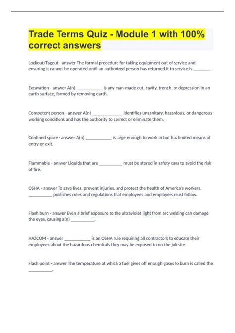 Download Trade Terms Quiz Answers Doc