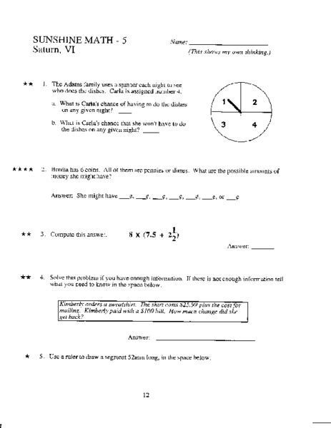 Read Online Sunshine Math Grade 5 Answer Key Doc