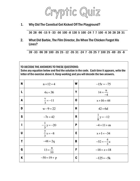 Download Cryptic Quiz Algebra With Pizzazz Answers PDF
